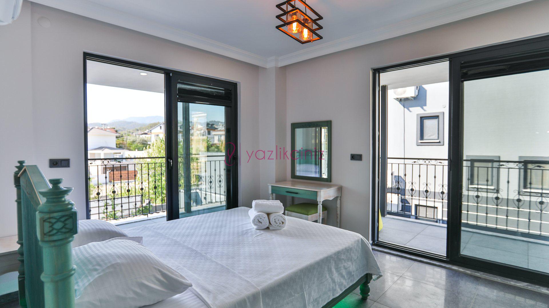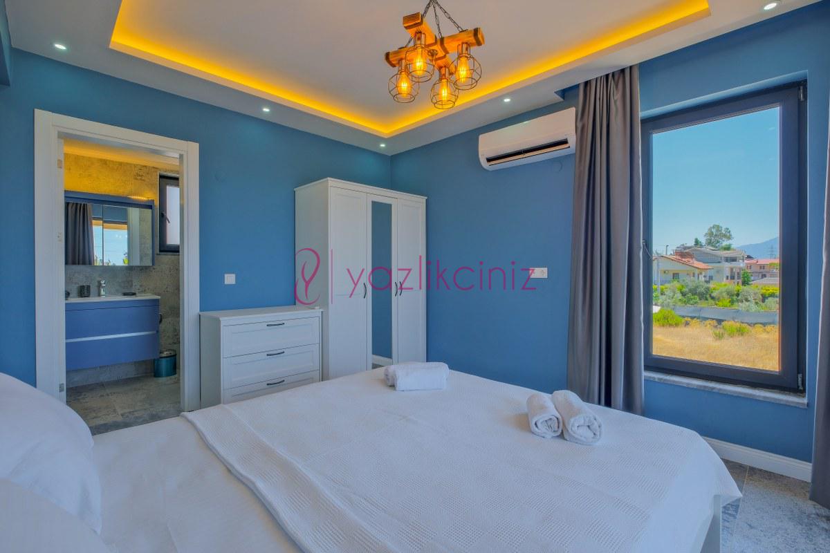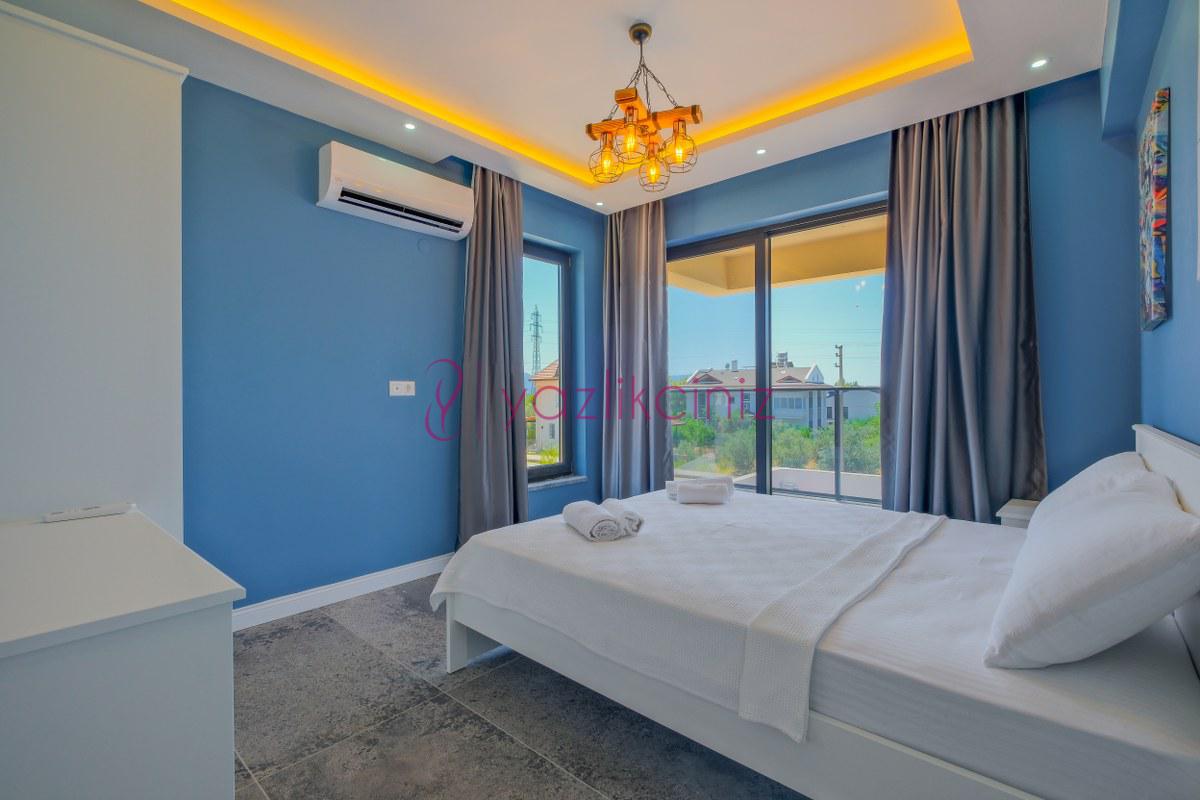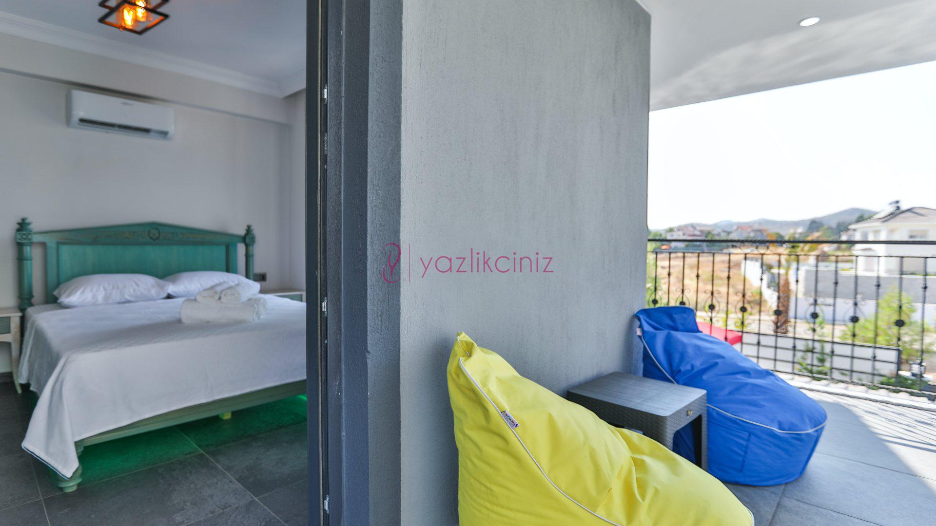 2.Yatak Odası: 1 adet çift kişilik yatak, elbise dolabı, makyaj masası, klima bulunmaktadır. (ortak tuvalet banyo.)