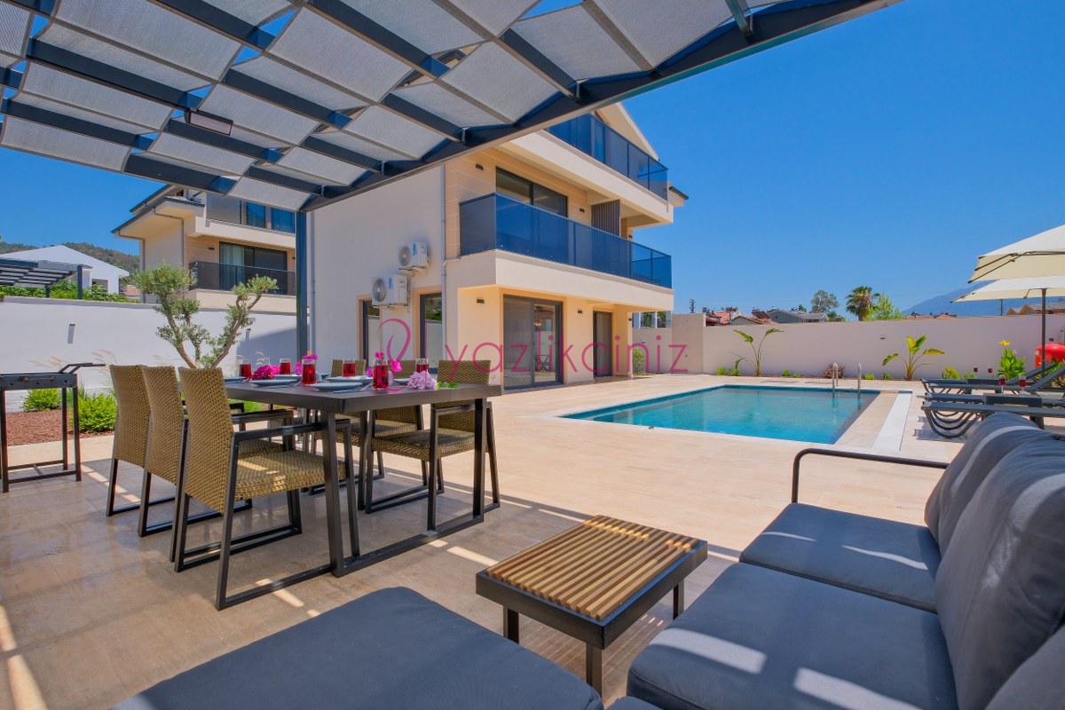 Villa Zafer, Fethiye, Çiftlik mevkiinde konumlanmış, doğa içerisinde 3 yatak odalı 6 kişi kapasiteli, geniş aileler, arkadaş grupları için ideal olan bir villamızdır. Konforlu dizaynının yanında yeşil bahçe alanı ve havuz terasıyla keyifli bir tatil imkanı sunmaktadır. Geniş, kalabalık, çocuklu aileler, geniş arkadaş grupları içinde ideal bir seçenek olacaktır. İhtiyacınız olan her şeyin düşünüldüğü villamızda size sadece sevdiklerinizle unutulmaz anlar yaşayıp tatilin tadını çıkarmak kalıyor.