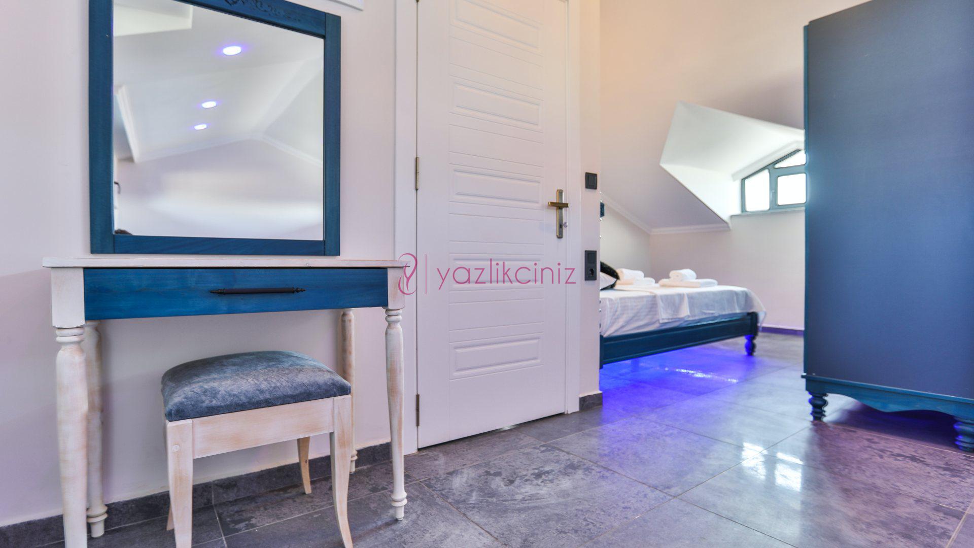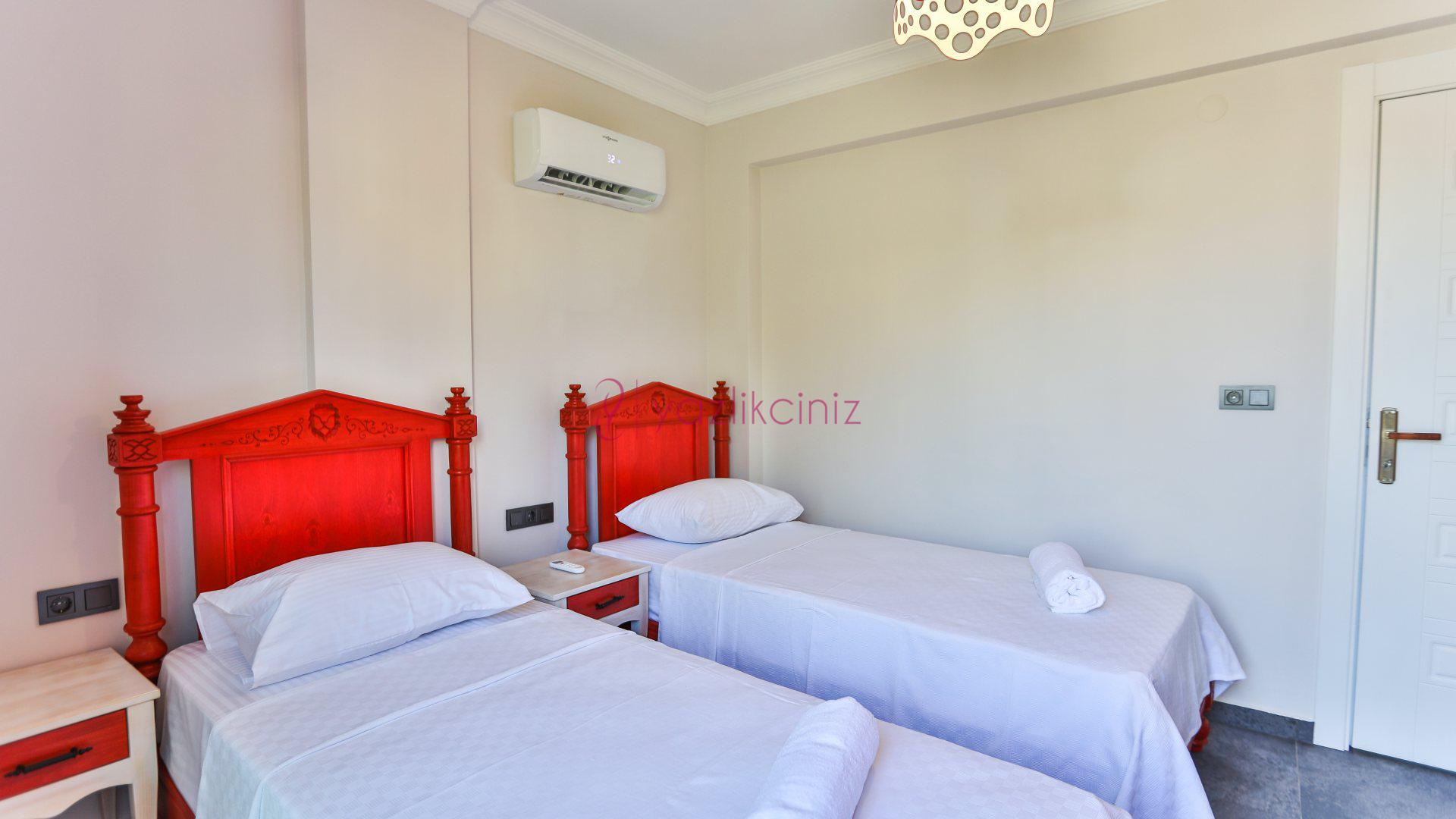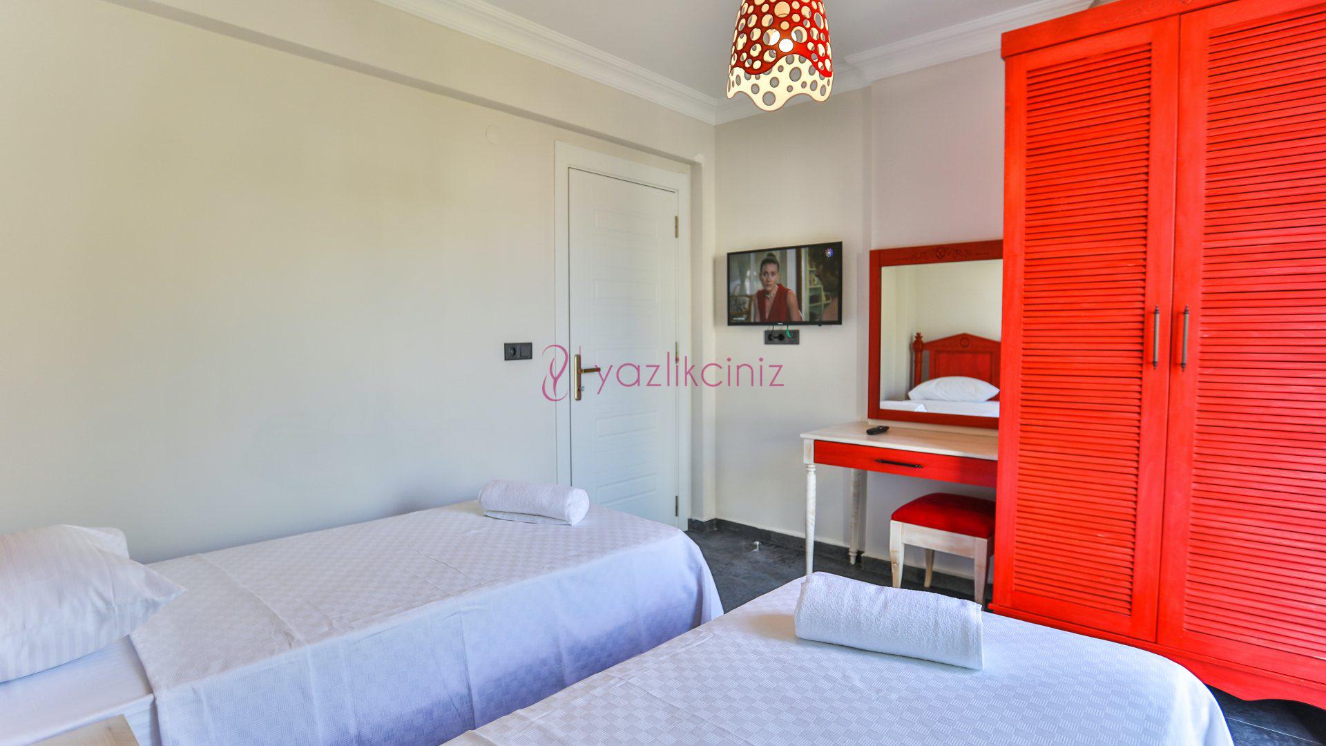 3.Yatak Odası: 2 adet tek kişilik yatak, elbise dolabı, makyaj masası, klima bulunmaktadır.(ortak tuvalet banyo.)
