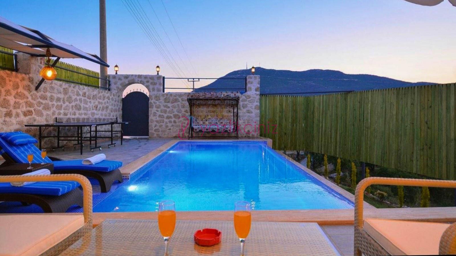 Villa Arven, Kalkan Sarıbelen Bölgesinde, 1 yatak odalı ve 2 kişi kapasitelidir. Villamız korunaklı özel havuzlu bir villamızdır. Yatak odasında jakuzi bulunan villamız Kalkan şehir merkezine 15 dakikalık sürüş mesafesindedir. Villamızın havuzu korunaklı olup muhteşem bir doğa manzarasına sahiptir. Ayni zamanda kapalı ısıtmalı havuzu olan villamız balayı çiftlerimize kapılarını aralamaktadır.