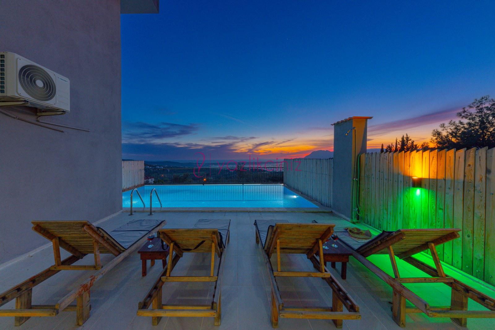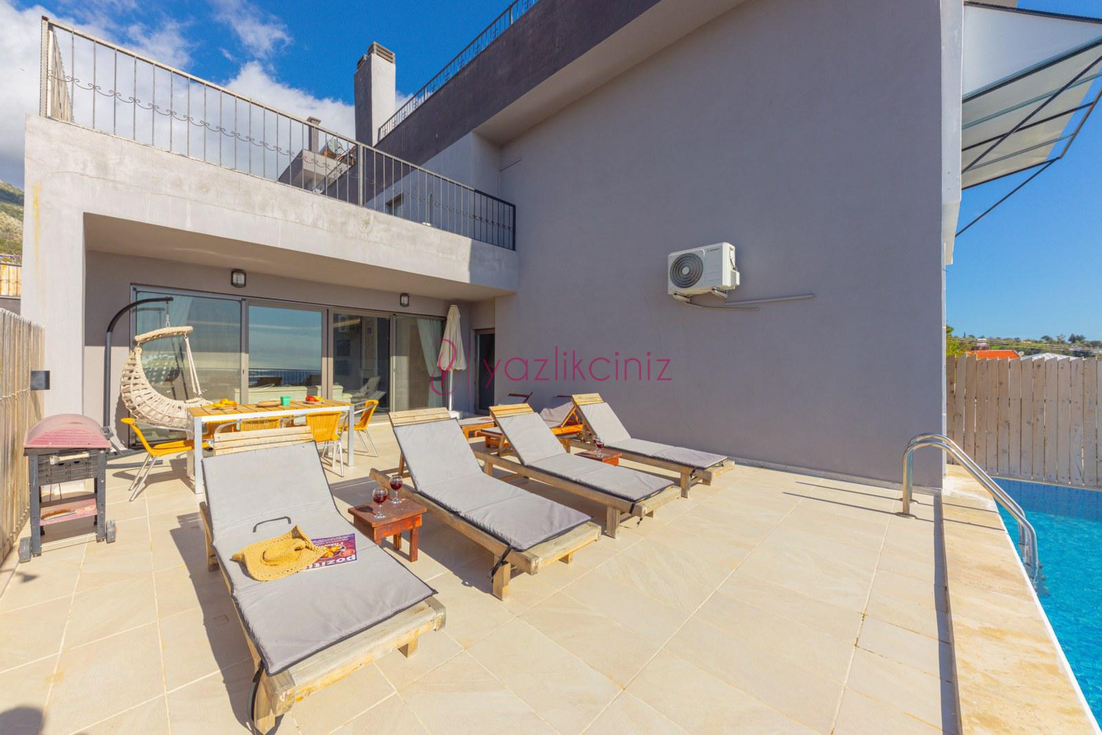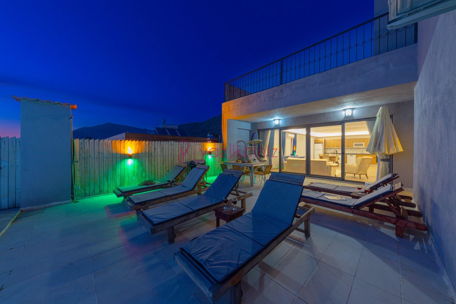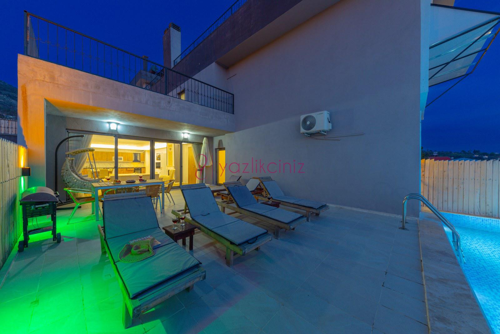 Villa Uzay Çizgisi, Kalkan Üzümlü Köyünde 3 yatak odali 6 kisilik özel yüzme havuzlu, muhtesem doga manzarasina sahip muhafazakar kiralik yazligimizdir. Margaz Palace içerisinde 3 villadan oluşmaktadır. Tek bir bina içerisinde 3 ayrı villadan biridir. Her bir villanın girişi ayrı olmaktadır. Modern özenle yapilan dekorasyonu ile size ve sevdiklerinize unutulmaz bir tatil geçirmenizi saglamaktadir.Gırıslerımız aynı merdıven ve asansorden ; vıllalara gırıs ise her kattan ozel kendı mustakıl kapılarından sağlanmaktadır. 3 katlıdır bınamız jenarator ve asansor ve engelli tuvaleti bulunmaktadır. Ortak girişi harici birbirini görmemektedir.