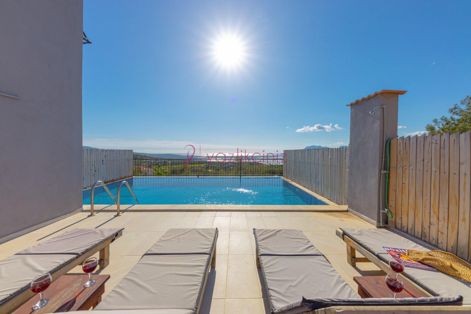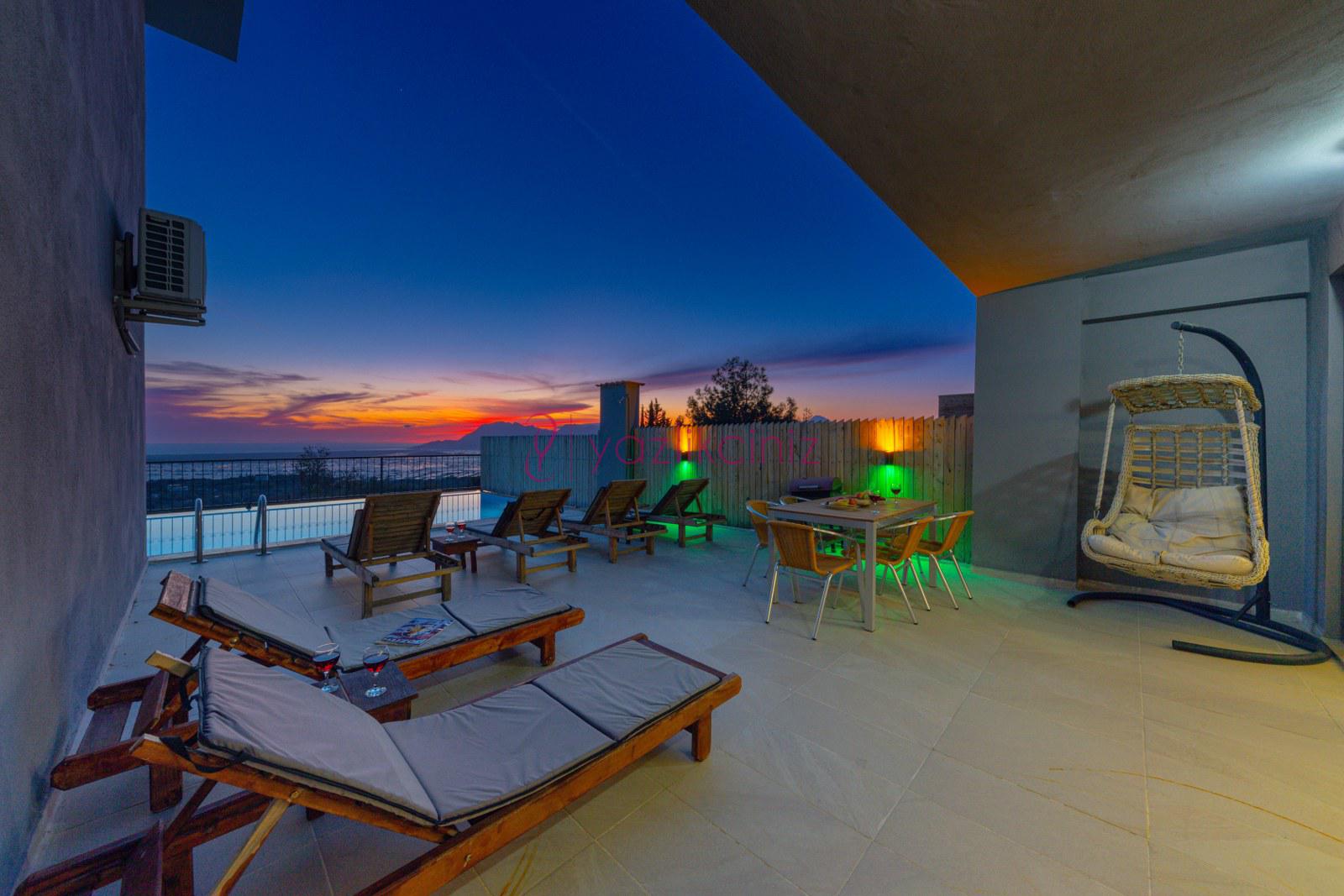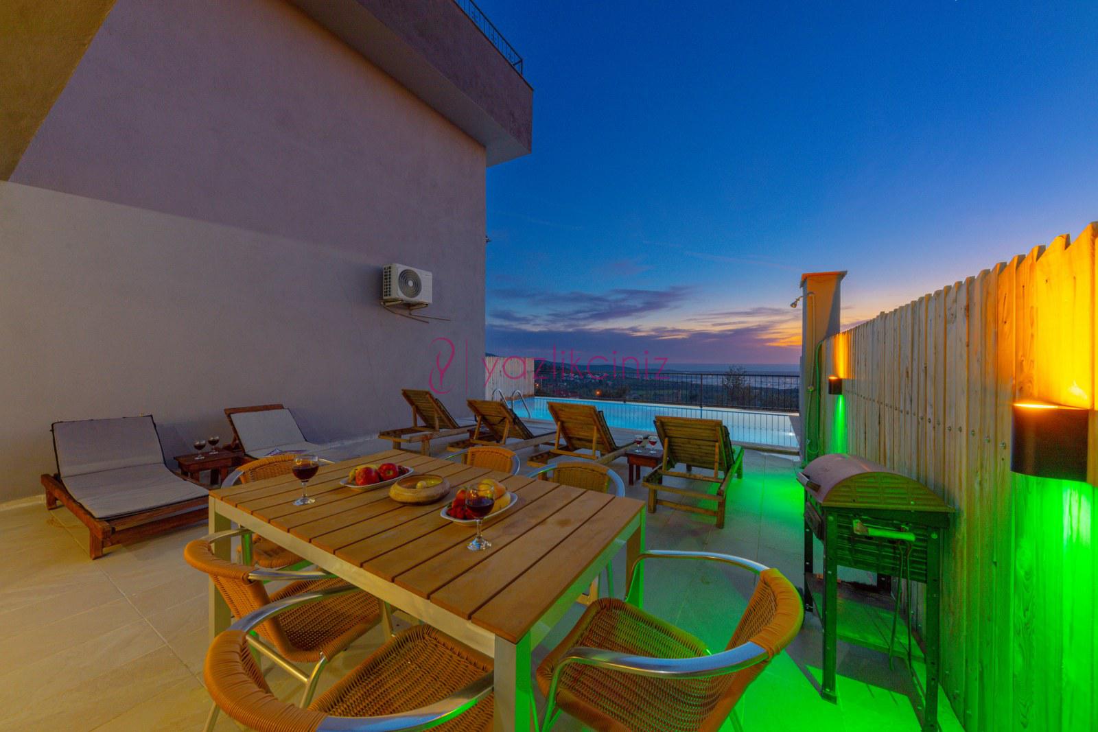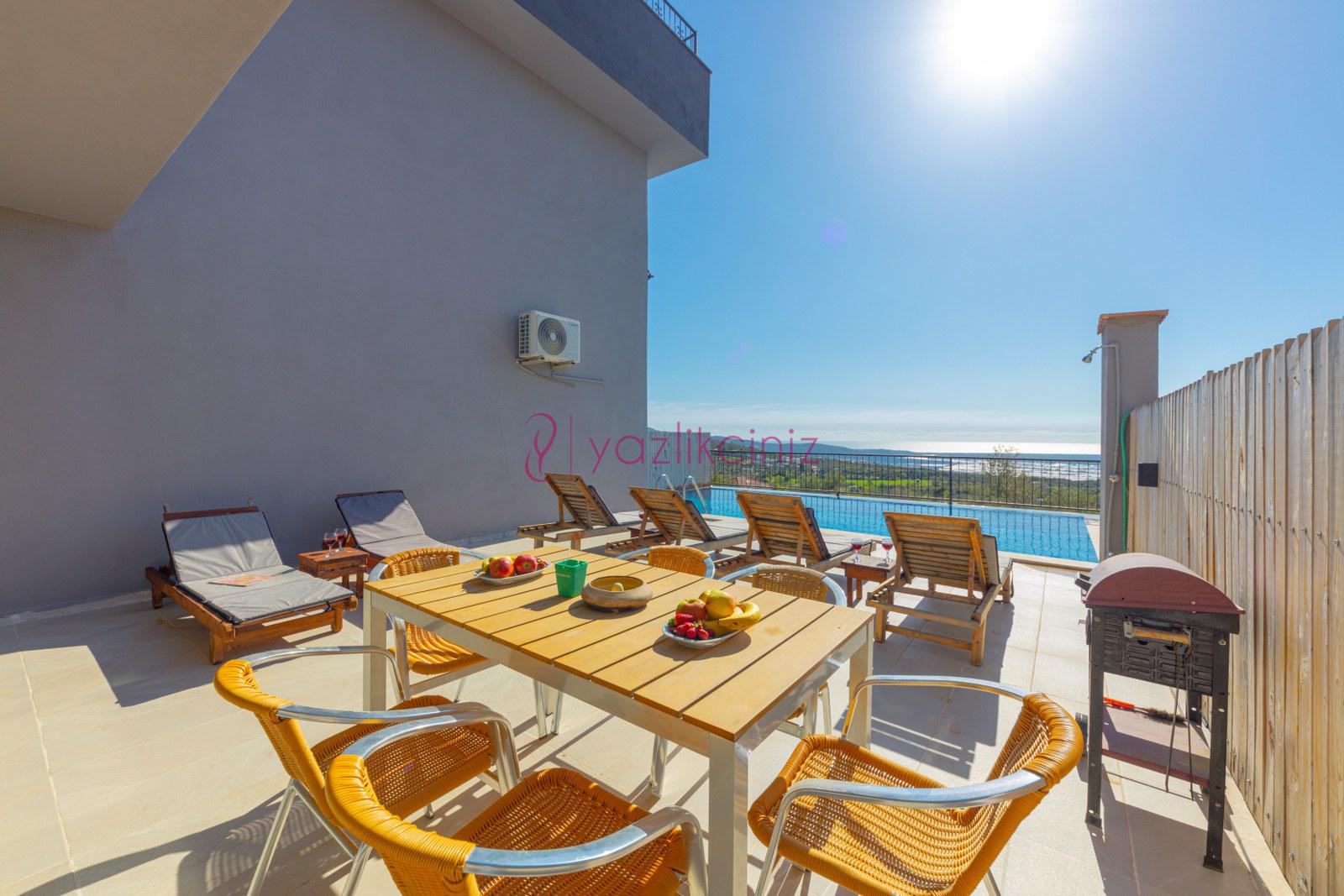 Villa Uzay Çizgisi, Kalkan Üzümlü Köyünde 3 yatak odali 6 kisilik özel yüzme havuzlu, muhtesem doga manzarasina sahip muhafazakar kiralik yazligimizdir. Margaz Palace içerisinde 3 villadan oluşmaktadır. Tek bir bina içerisinde 3 ayrı villadan biridir. Her bir villanın girişi ayrı olmaktadır. Modern özenle yapilan dekorasyonu ile size ve sevdiklerinize unutulmaz bir tatil geçirmenizi saglamaktadir.Gırıslerımız aynı merdıven ve asansorden ; vıllalara gırıs ise her kattan ozel kendı mustakıl kapılarından sağlanmaktadır. 3 katlıdır bınamız jenarator ve asansor ve engelli tuvaleti bulunmaktadır. Ortak girişi harici birbirini görmemektedir.