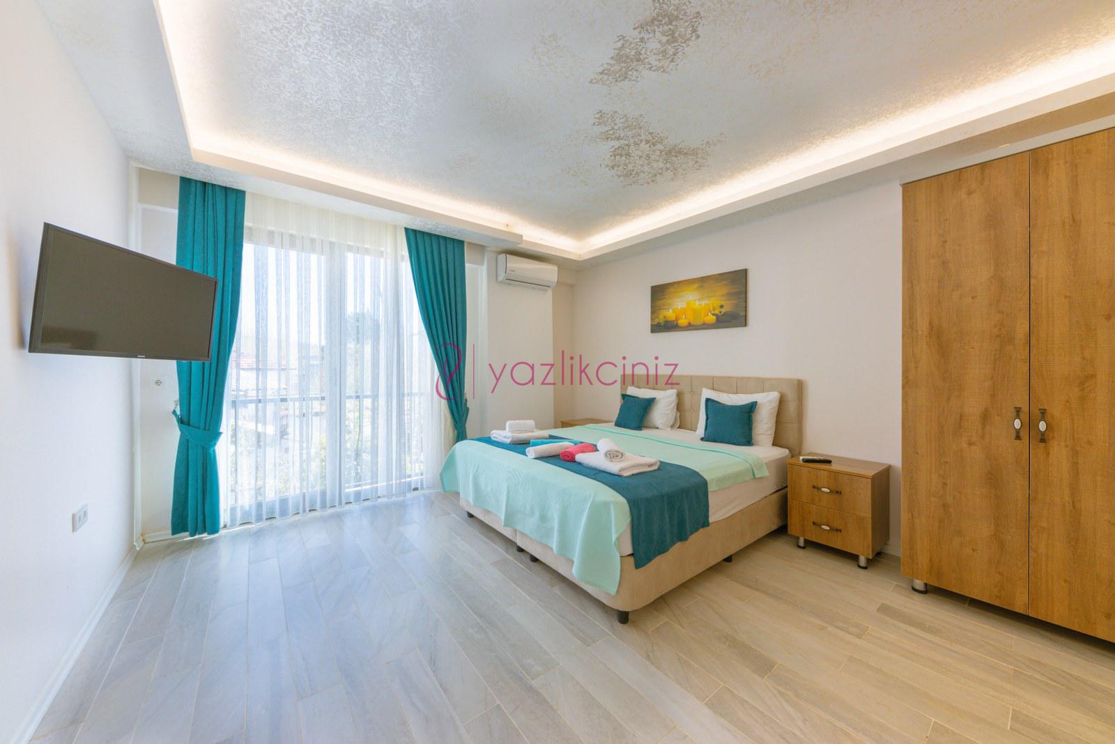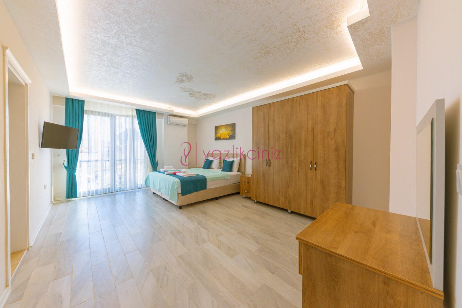 3.Yatak odasi ; suit oda, 1 adet çift kisilik yatak, elbise dolabi, makyaj masasi, komodin, klima, banyo ve tuvalet bulunmaktadir.