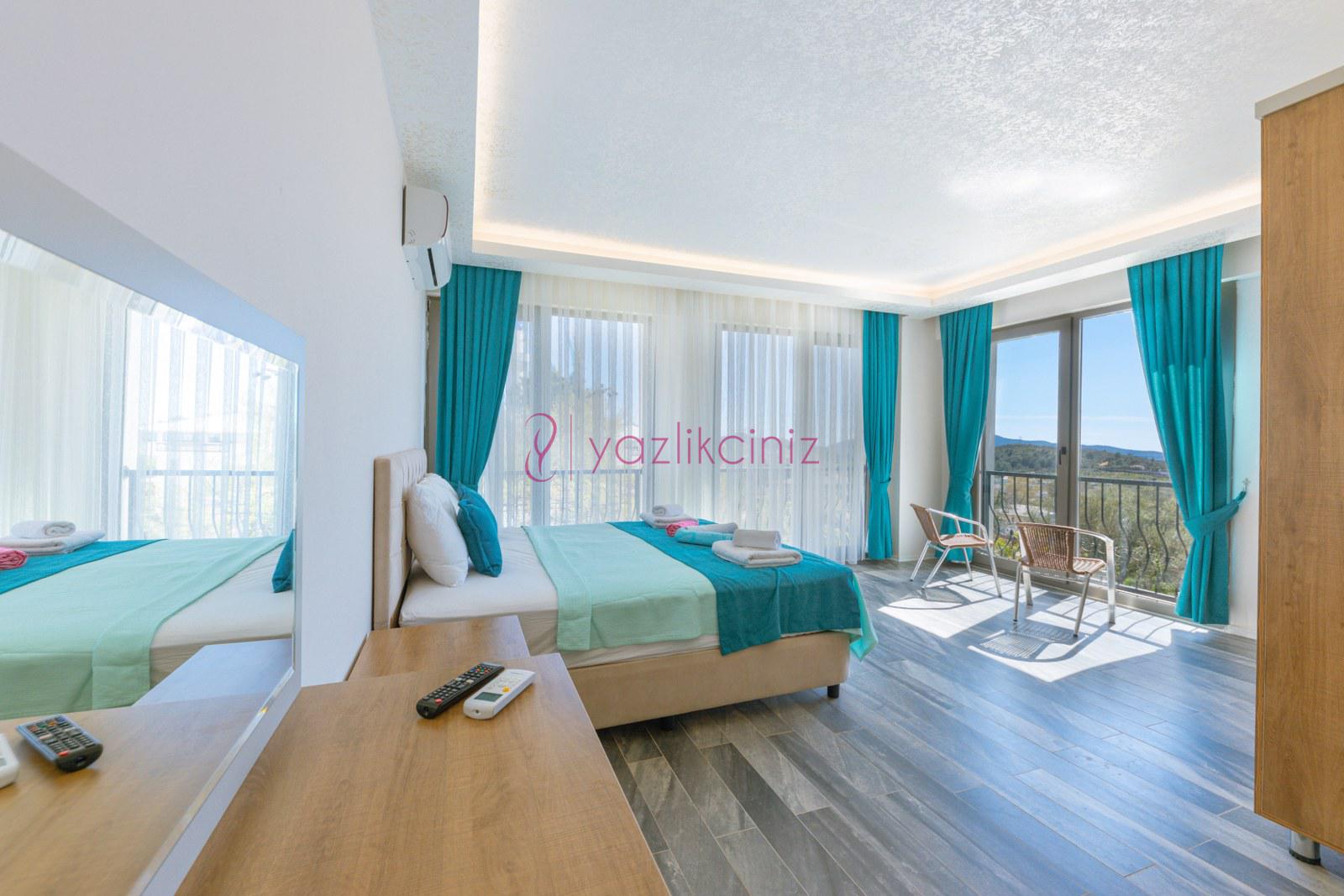 2.Yatak odasi ; suit oda, 2 adet tek kisilik yatak , elbise dolabi , makyaj masasi , komodin , klima , banyo ve tuvalet bulunmaktadır.