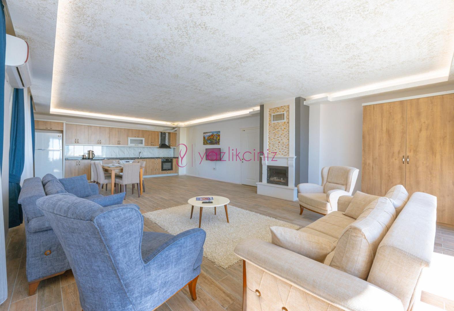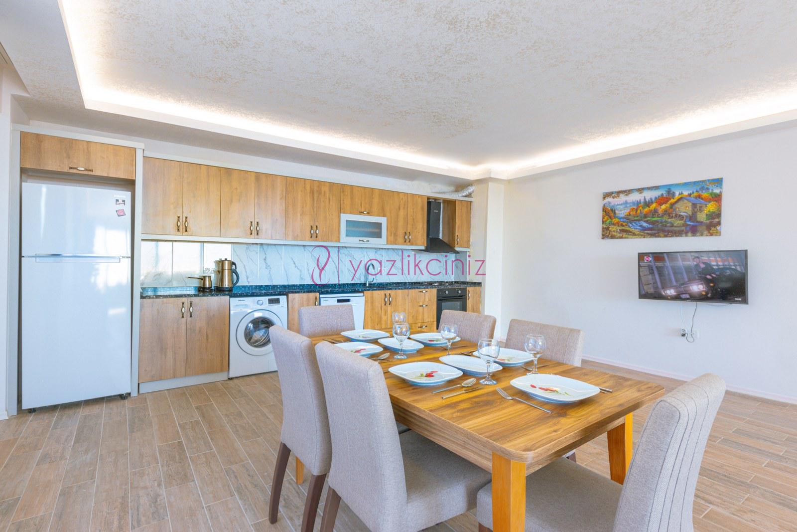 Oturma grubu, televizyon, uydu alicisi, ütü, ütü masasi, elektrik süpürgesi, klima, yemek masasi ve sandalyeler, havuz terasina çikis bulunmaktadir.