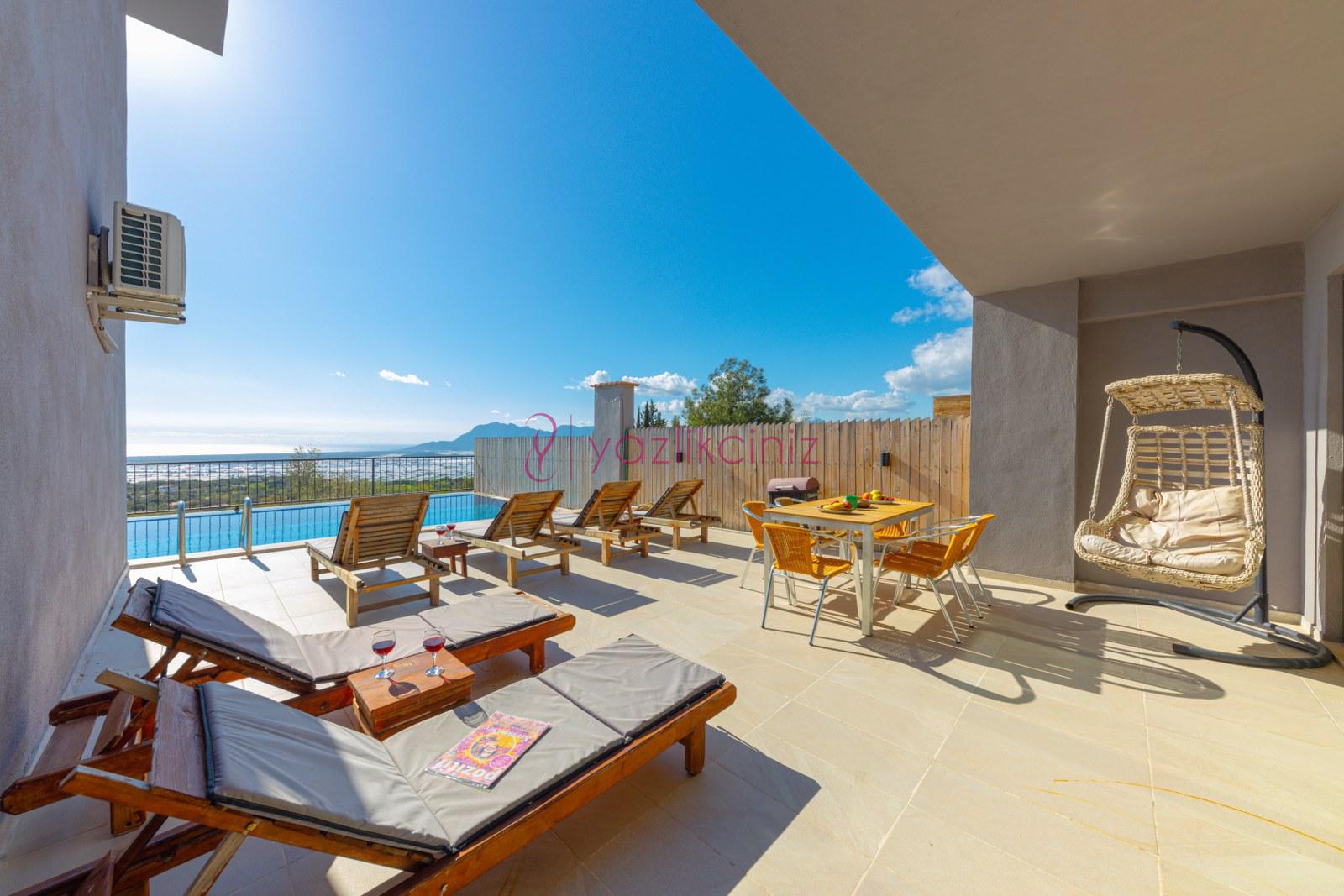 Not : Villanin güneslenme terasi ve havuzunun dis taraftan görünmemesi için gerekli önlemler alinmistir fakat villanin diger bölümlerinin görünürlügü kesin olarak garanti edilememektedir.