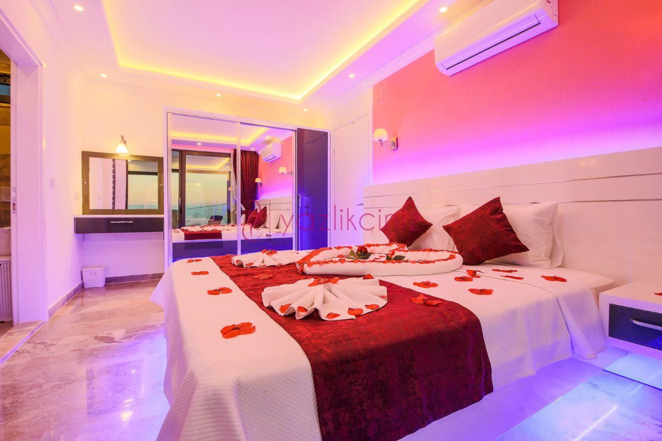 1. Yatak Odasi: 1 adet çift kisilik yatak, klima, komodin, elbise dolabi, makyaj masasi, jakuzi, banyo ve tuvalet bulunmaktadir.