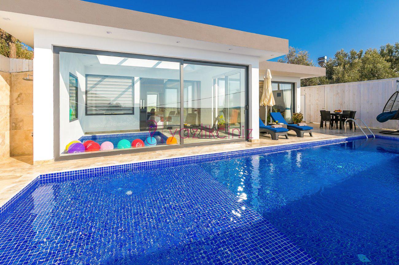 Bahçe içerisinde özel yüzme havuzu, sezlonglar, günes semsiyesi, masa ve sandalyeler, barbekü bulunmaktadir.
